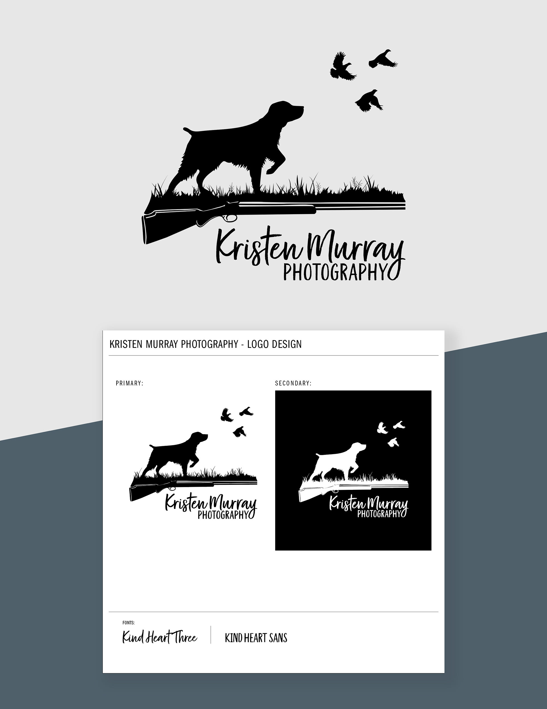 Logo variation design for Kristen Murray Photography for her field hunting dog portrait sessions. To see more of her work, visit Kristen's website here: https://www.kristenjmurray.com/